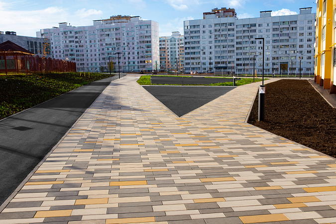 Прямоугольник — одна из самых знаменитых форм тротуарных плит, производимых нашей компанией. Ее популярность объясняется многообразием размеров бетонных изделий, простой геометрией и вариативностью укладки.